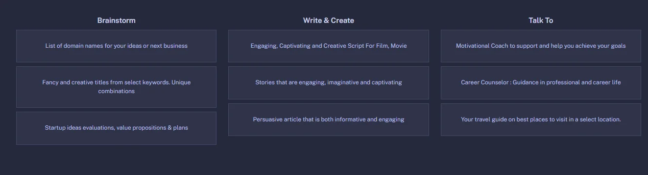 Помощь в проведении мозговых штурмов, разработке идей, написании текстов, коучинге и поиске информации в Интернете Cleo – это продвинутый чат-ассистент