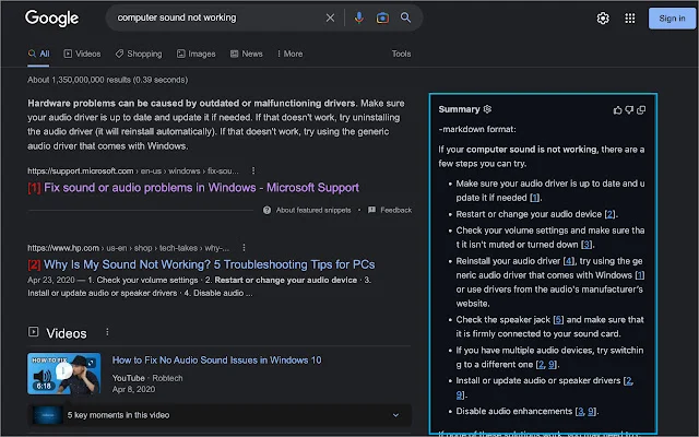 Расширение для браузера для саммари Google и YouTube. Glarity – Summary for Google/YouTube (ChatGPT) – это расширение браузера с открытым исходным