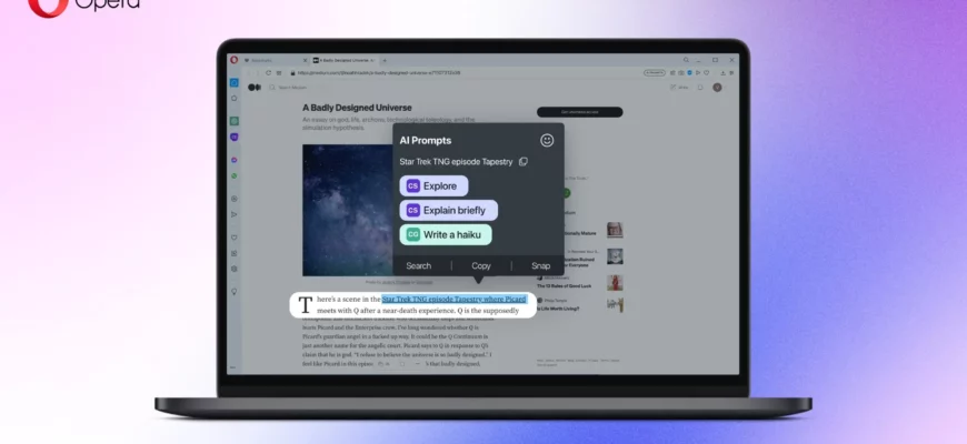 В 2023 году разработчики браузера Opera и Opera GX представили свою новую инновационную функцию под названием AI Prompts. Это упрощенное расширение ChatGPT