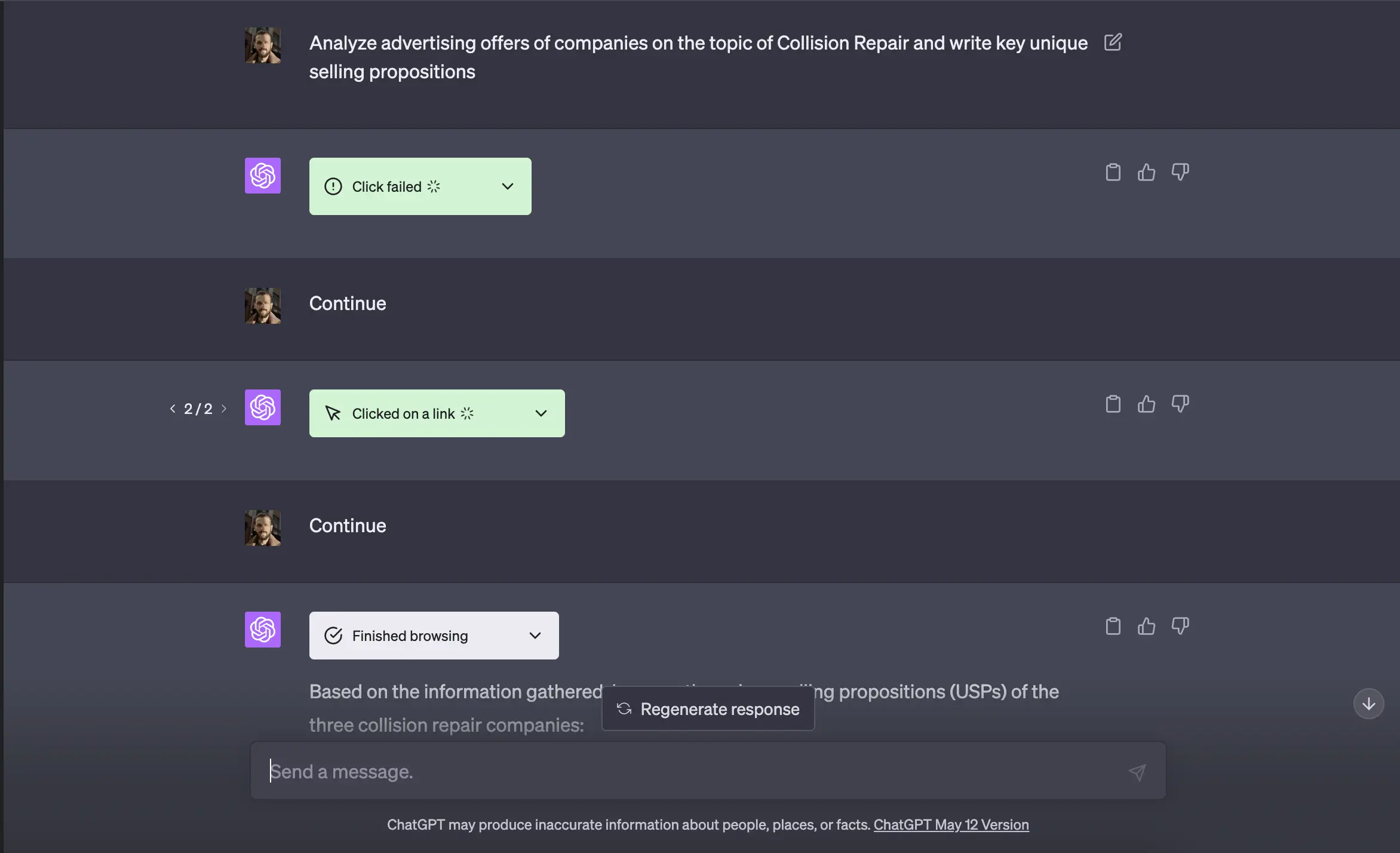 - Если в задаче указать “не используй браузер”, то он игнорирует эту просьбу и каждый раз запускает новый поиск, который может не дать результатов из-за технической ошибки.