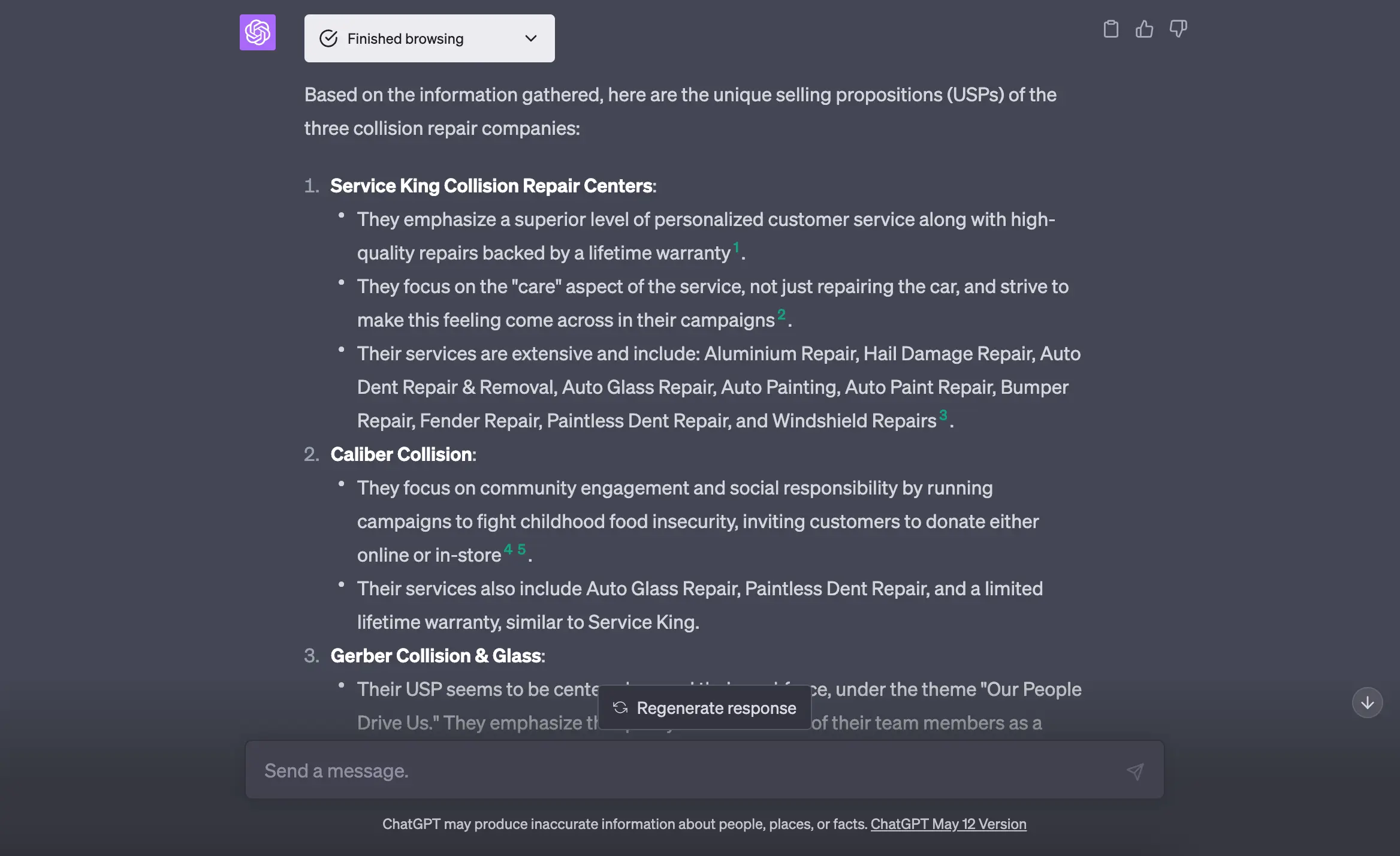 Если ChatGPT понимает, что нужно найти новую для него информацию, то он самостоятельно совершает поиск по сайтам, предоставляя ссылки на источники.