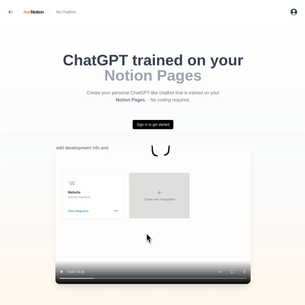 Инструмент для создания чат-бота с помощью Notion Pages. Инструмент AskNotion позволяет пользователям создать свой личный чатбот, который обучается на