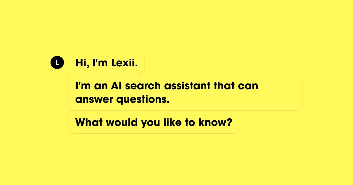Лексии – помощник поиска ИИ, который может отвечать на вопросы Lexii – помощник поиска ИИ, который может ответить на вопросы.