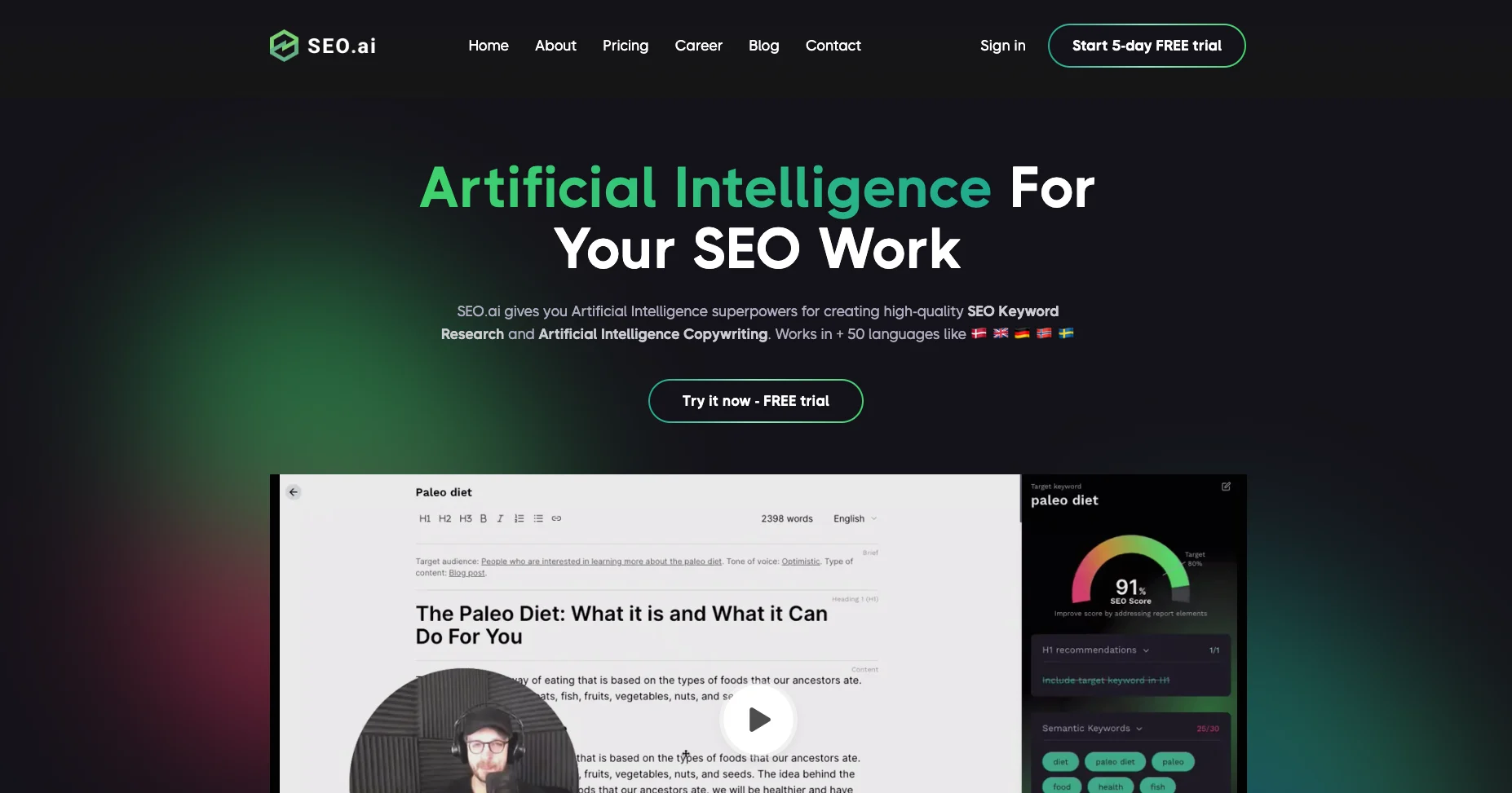 Платформа контента SEO Powered AI SEO.AI-это платформа искусственного интеллекта, которая помогает SEO-маркетологам быстрее создавать высококачественный