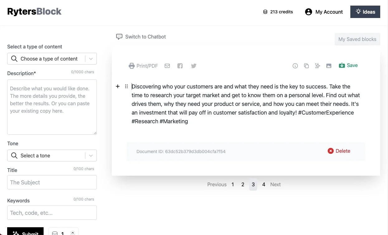 Пишущий помощник с искусственным интеллектом RytersBlock.com – это помощник по написанию текстов на основе искусственного интеллекта, который помогает