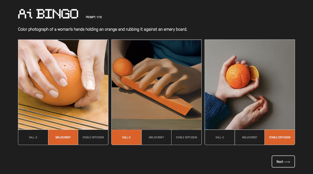 Гадание для художников. AI Bingo – это игра-угадайка, в которой три художника соревнуются друг с другом в том, кто больше угадает.