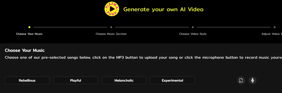 Инструмент для создания музыкального видео из песни. Plazmapunk – это инструмент, который позволяет создавать музыкальные видеоклипы из mp3-файлов