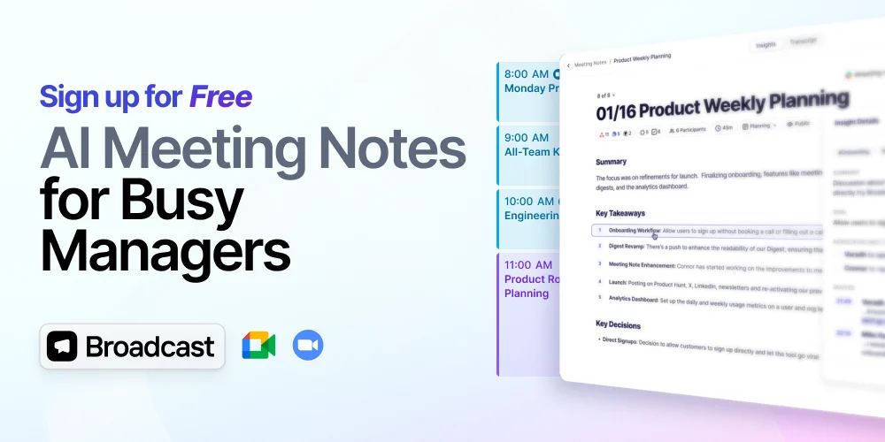 Инструмент для управления совещаниями путем автоматизации заметок, отслеживания решений и координации последующих действий.