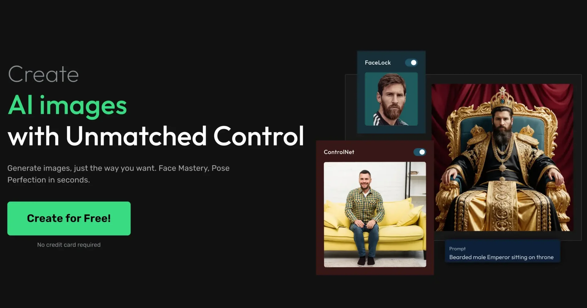 Инструмент для создания настраиваемых AI-изображений с контролем над лицом, композицией и несколькими моделями.