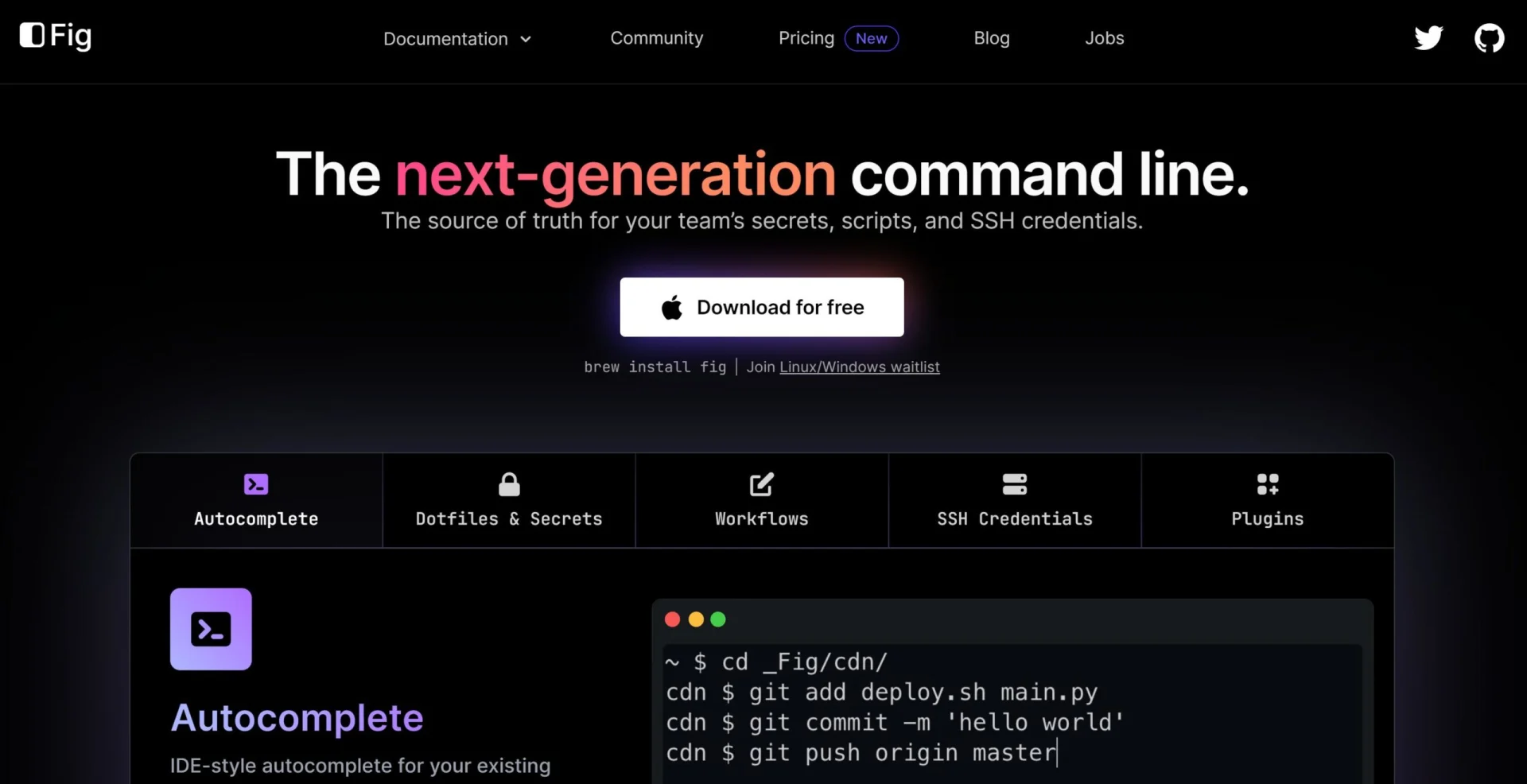 Бесшовное дополнение для вашего существующего терминала Fig интегрируется с самыми популярными терминалами, оболочками и IDE; Перейти