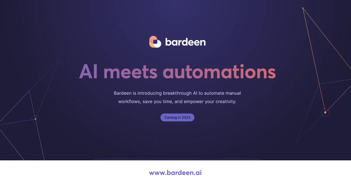 Используйте ИИ, чтобы автоматизировать много ручных рабочих процессов Bardeen – это новаторский инструмент AI, который автоматизирует ручные рабочие