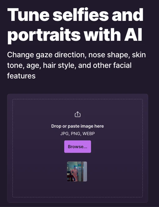 Онлайн-инструмент для редактирования лица, позволяющий изменять черты лица, добавлять макияж и прически.