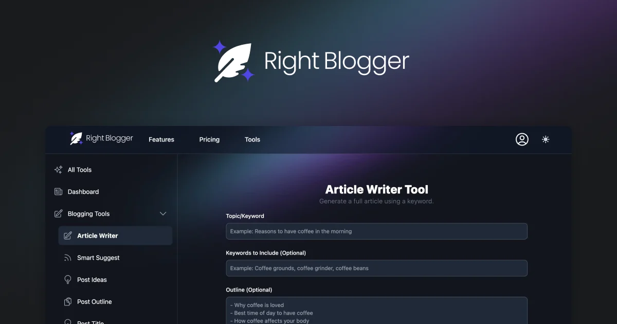Инструмент для ведения блогов и создания контента. RightBlogger – это инструмент для ведения блога с искусственным интеллектом, который помогает