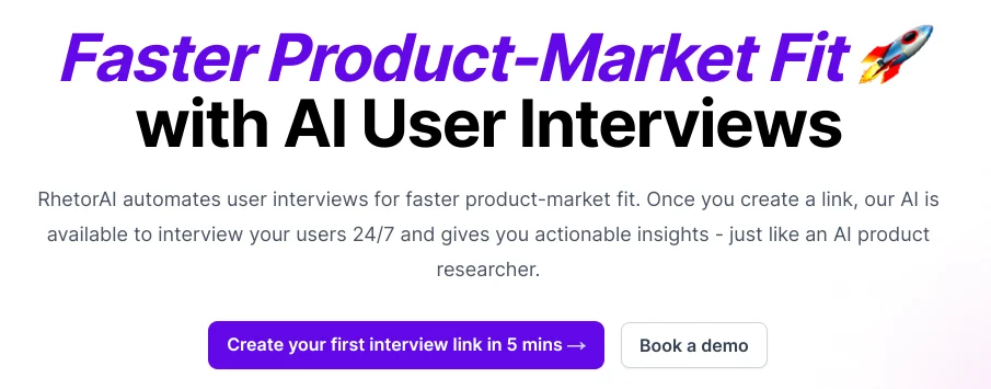 Платформа для создания пользовательских интервью для отзывов о продукции. RhetorAI – это инструмент для проведения интервью с пользователями на основе