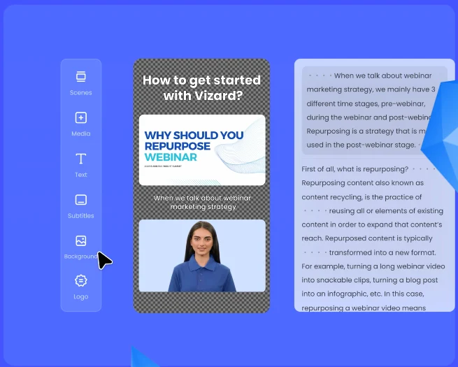 Инструмент для перепрофилирования существующего контента в видео. Vizard – это инструмент, который позволяет пользователям легко перепрофилировать