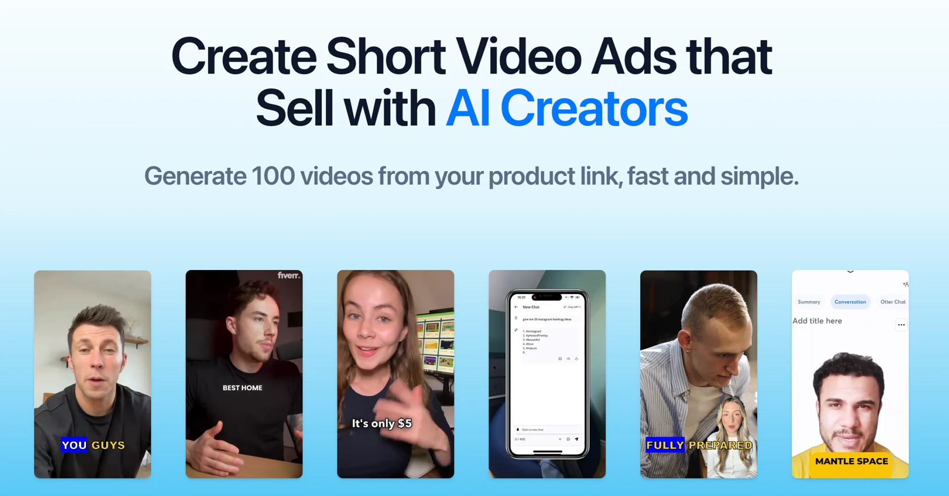 Инструмент для создания коротких видеореклам по одной ссылке на товар с использованием цифровых клонов и анализа тенденций.