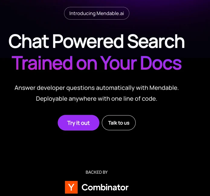 Инструмент для создания поиска с использованием чата, обученного поиску по вашим документам. Mendable – это поисковая панель с поддержкой чата, которая