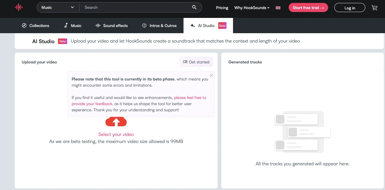 Платформа с бесплатной музыкой, звуковыми эффектами, интро/аутро и AI Studio для легкого создания собственных саундтреков.