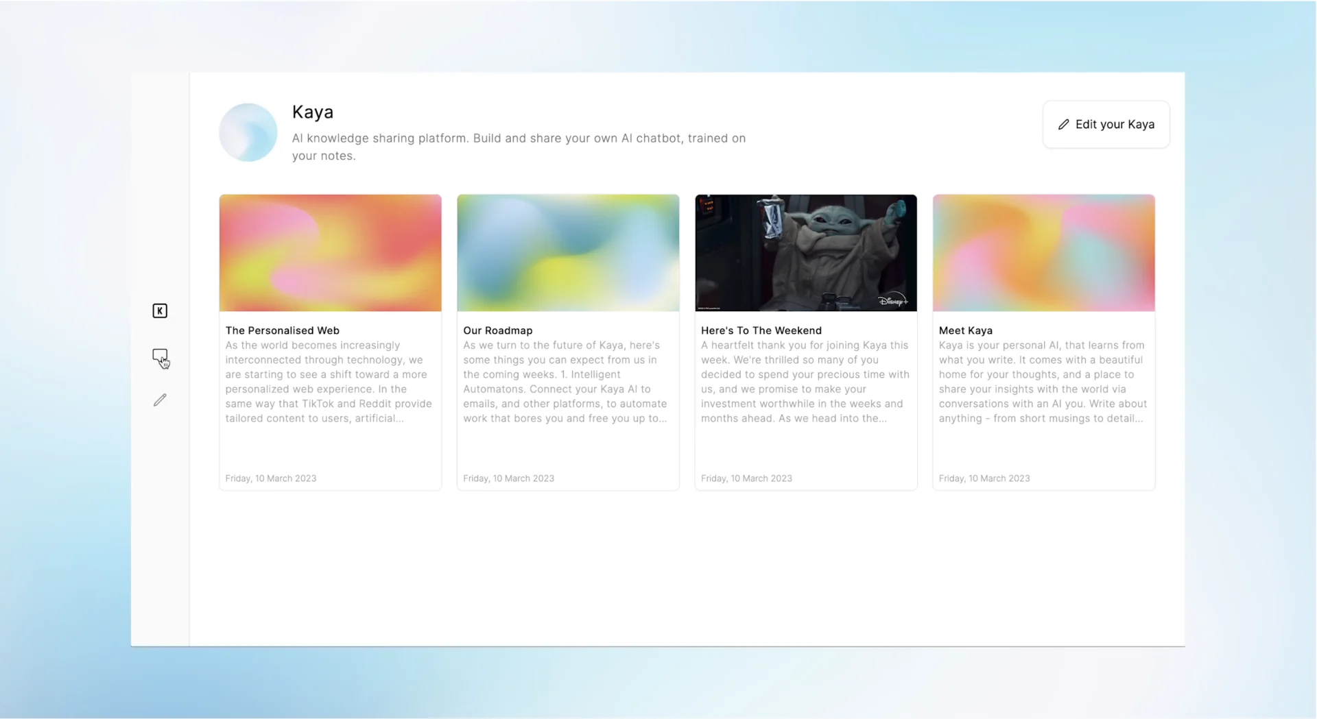 Платформа для создания и развертывания персонализированных помощников ИИ. Kaya – это платформа ИИ, которая позволяет пользователям создавать собственных помощников ИИ.