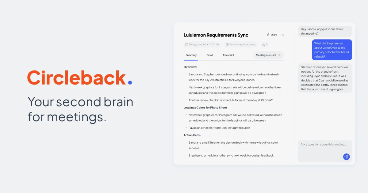 Платформа для помощников по организации встреч, позволяющая автоматизировать организацию, расшифровку, подведение итогов и назначение пунктов действий.