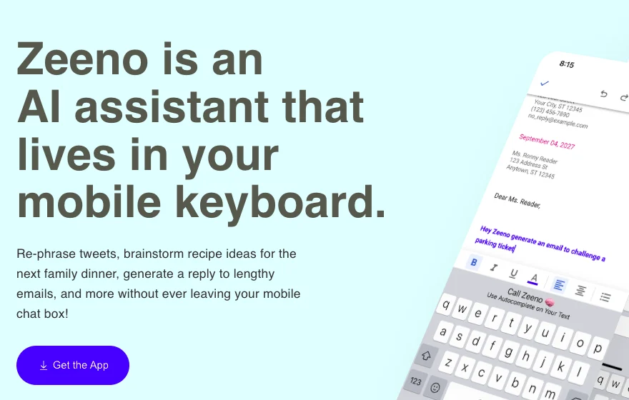 Приложение для помощи с мобильной клавиатурой и проведения исследований в чате. Zeeno – это помощник с искусственным интеллектом, который живет в