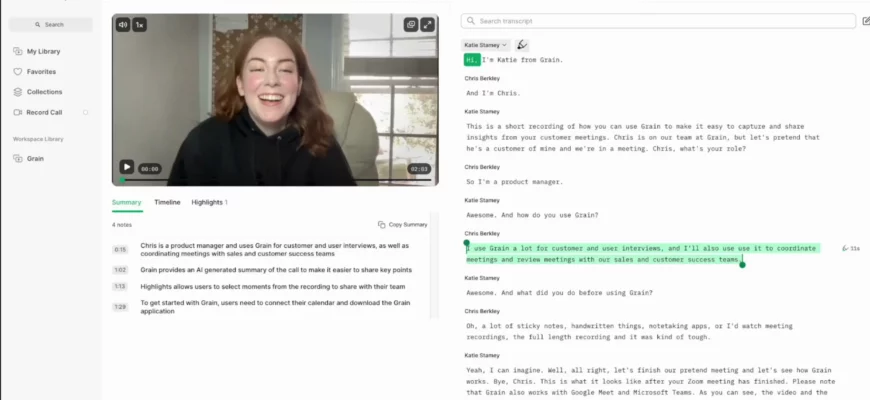 Инструмент для команд, позволяющий подводить итоги встреч с клиентами. Grain – это инструмент на основе искусственного интеллекта, который помогает