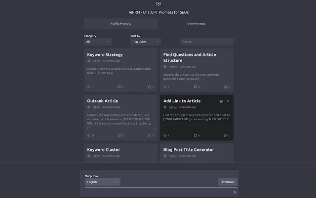 Расширение Google Chrome для чатгпт-подсказок по seo, маркетингу, искусству, SaaS, программированию. Расширение AIPRM для ChatGPT предоставляет пользователям