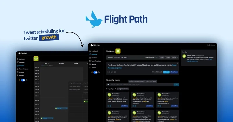 Flight Path – инструмент для роста присутствия и влияния в Twitter с помощью AI-поддержки, расписания твитов, шаблонов CTA и многого другого!