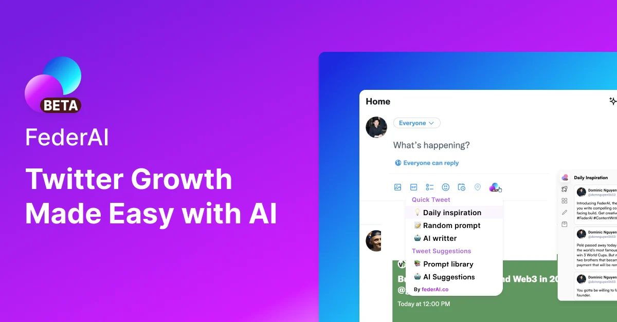 Помогает пользователям увеличить свою аудиторию в Twitter FederAI – это платформа контента на основе искусственного интеллекта, призванная помочь