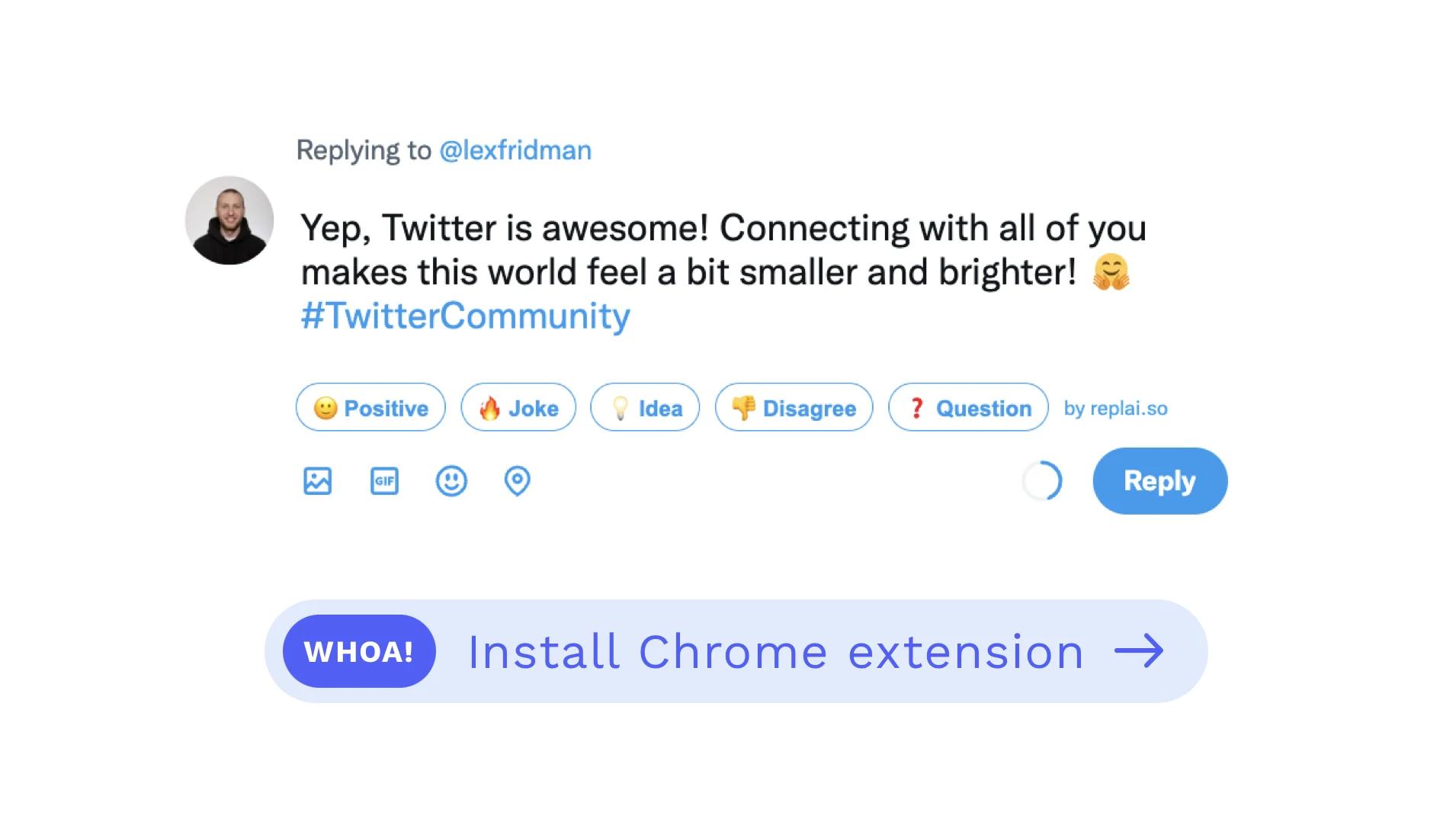 Используйте ИИ, чтобы генерировать значимые ответы на твиты Replai-это мощный инструмент, управляемый AI, предназначенный для того, чтобы помочь вам создать