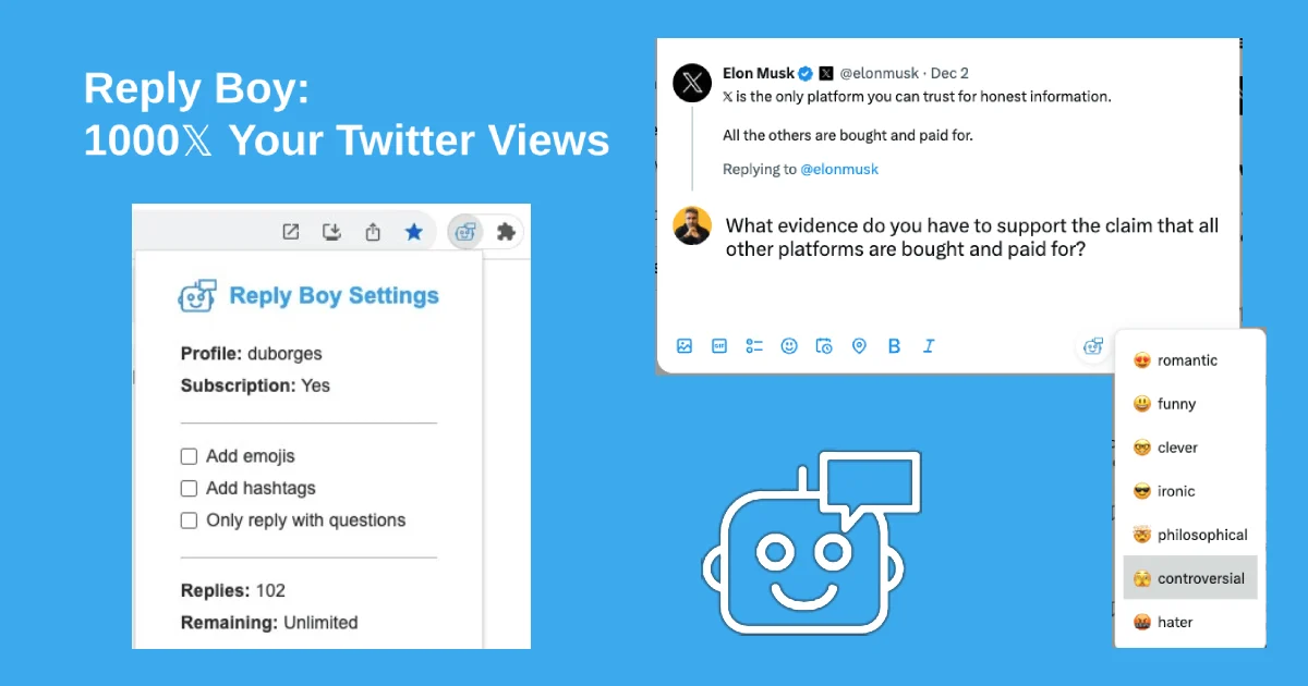Расширение для Google Chrome, позволяющее развивать аккаунты Twitter X, отвечая на популярные твиты.