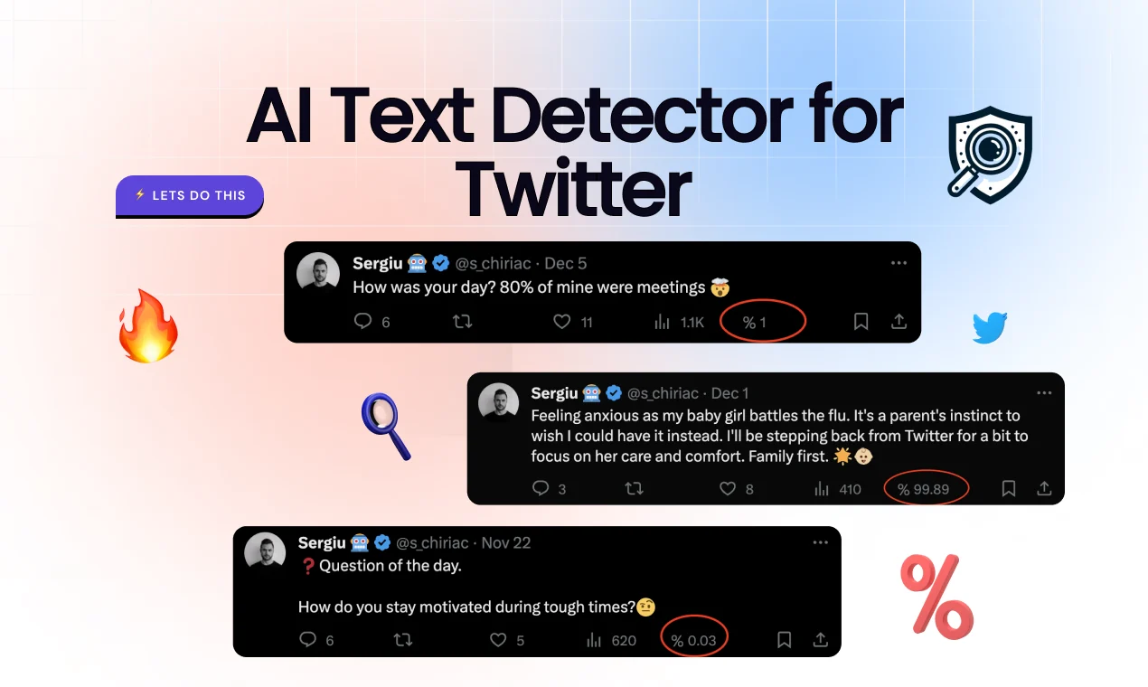 Инструмент для определения и отображения вероятности того, что твиты генерируются искусственным интеллектом, непосредственно в Twitter с помощью расширения для Chrome.
