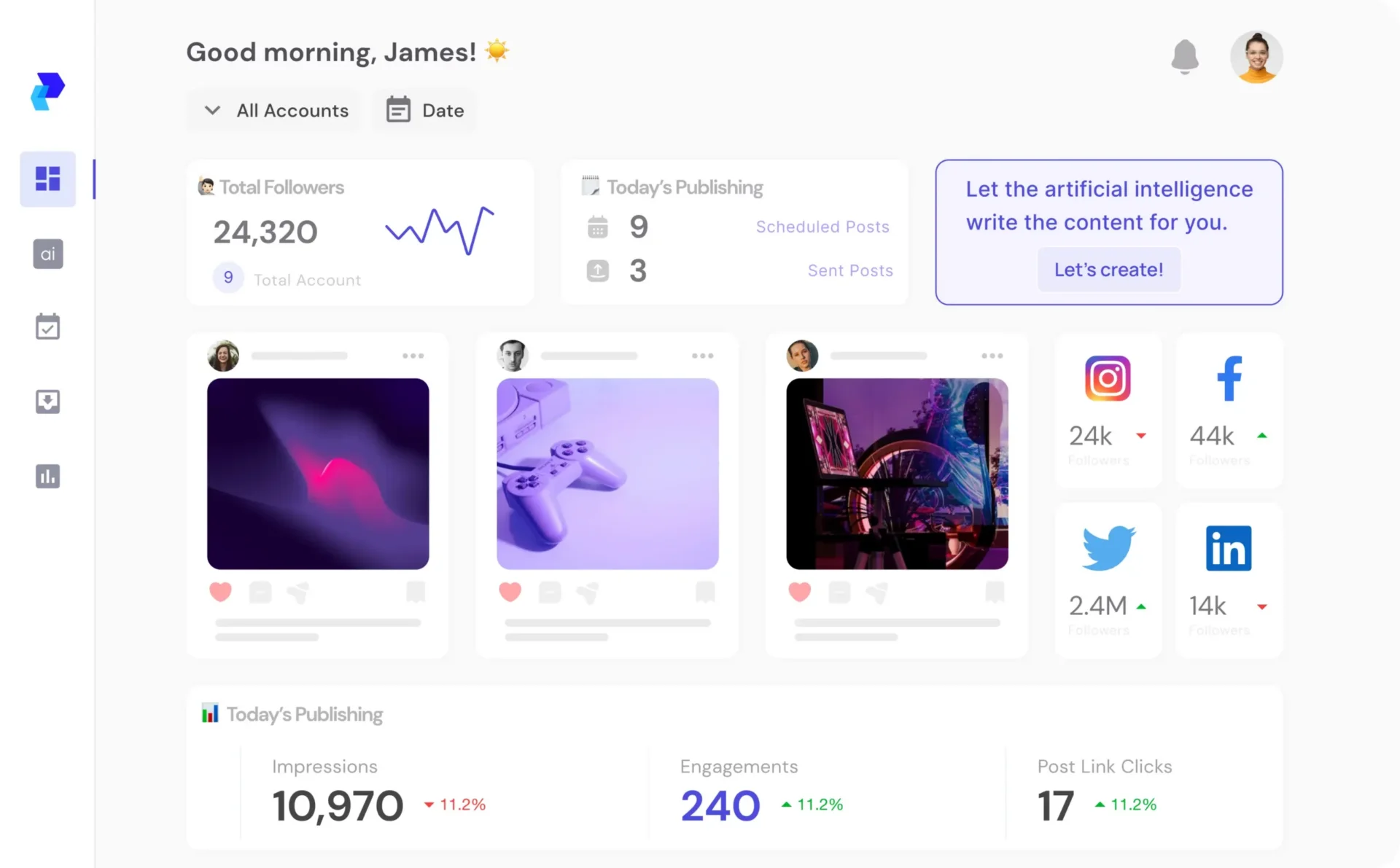 Платформа для управления социальными сетями, создания контента, публикации и аналитики.