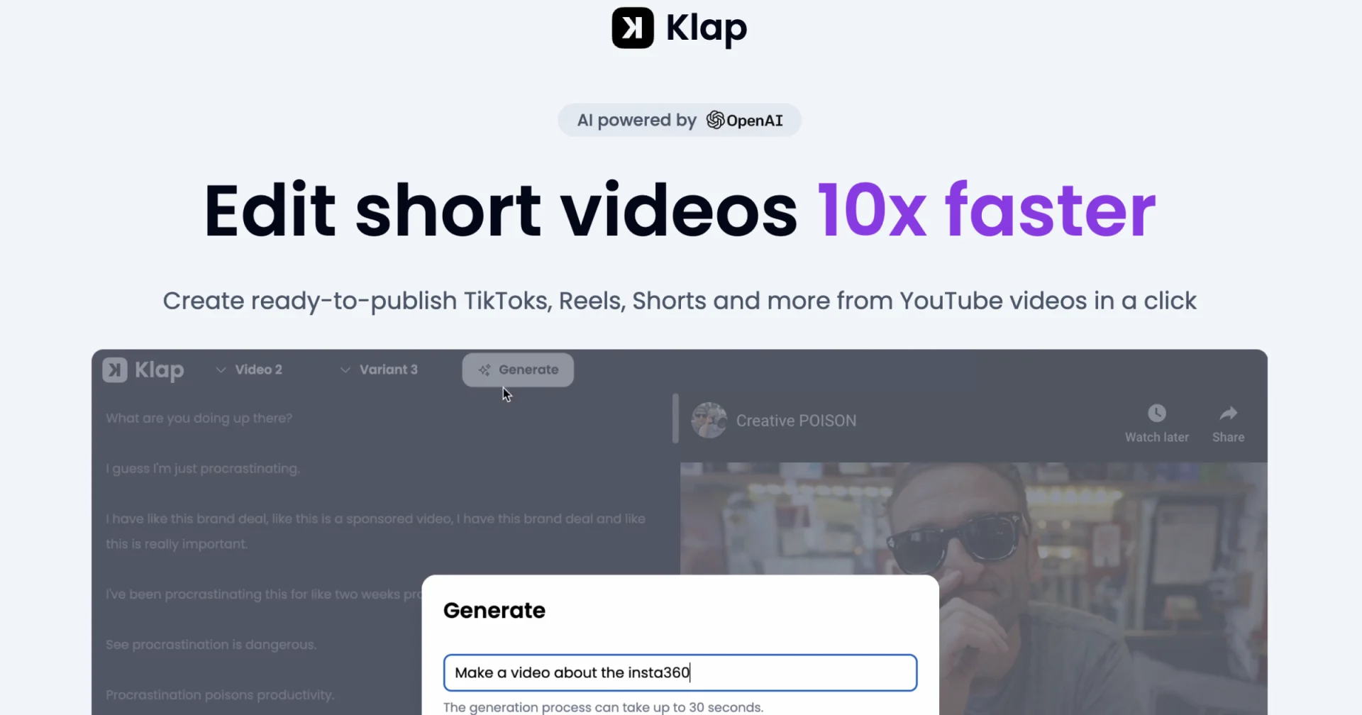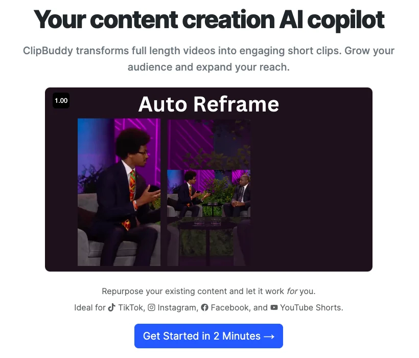 Инструмент для автоматического создания коротких клипов из длинных видеороликов, пригодных для совместного использования.