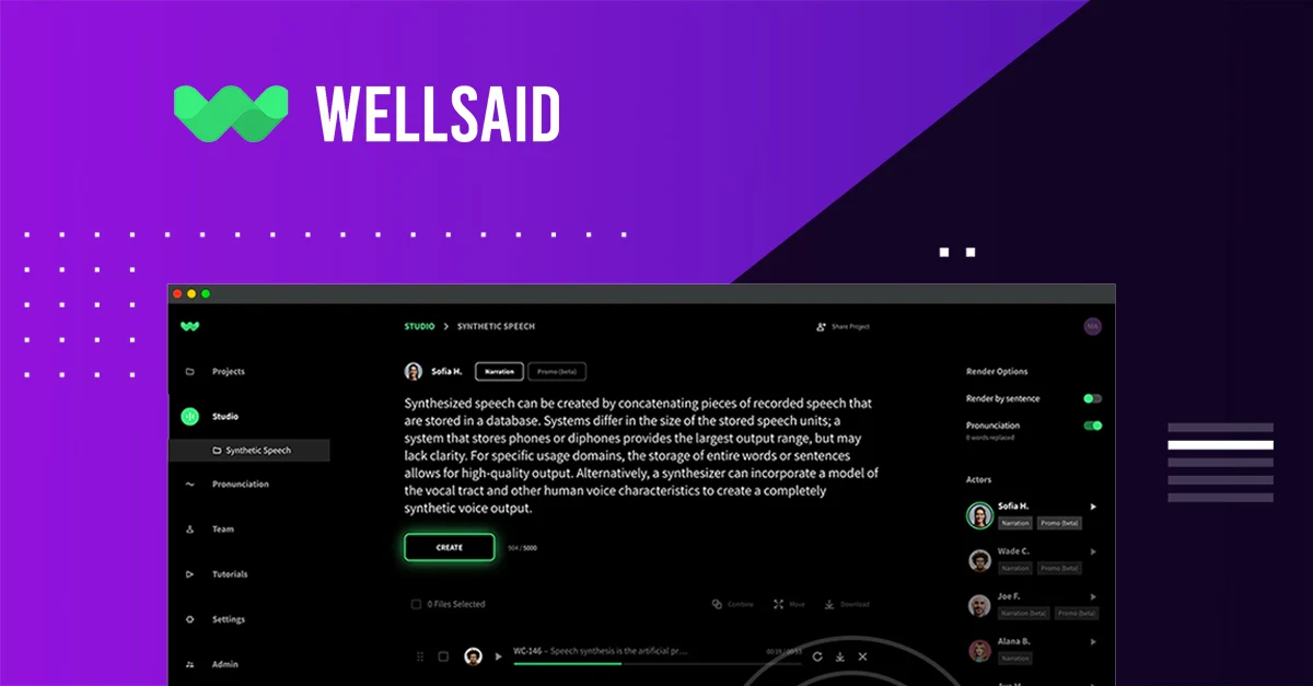 ВеллСайд – инструмент для синтеза речи на основе ИИ Wellsaid-это инструмент Text-To Speek, который позволяет пользователям создавать реалистичные