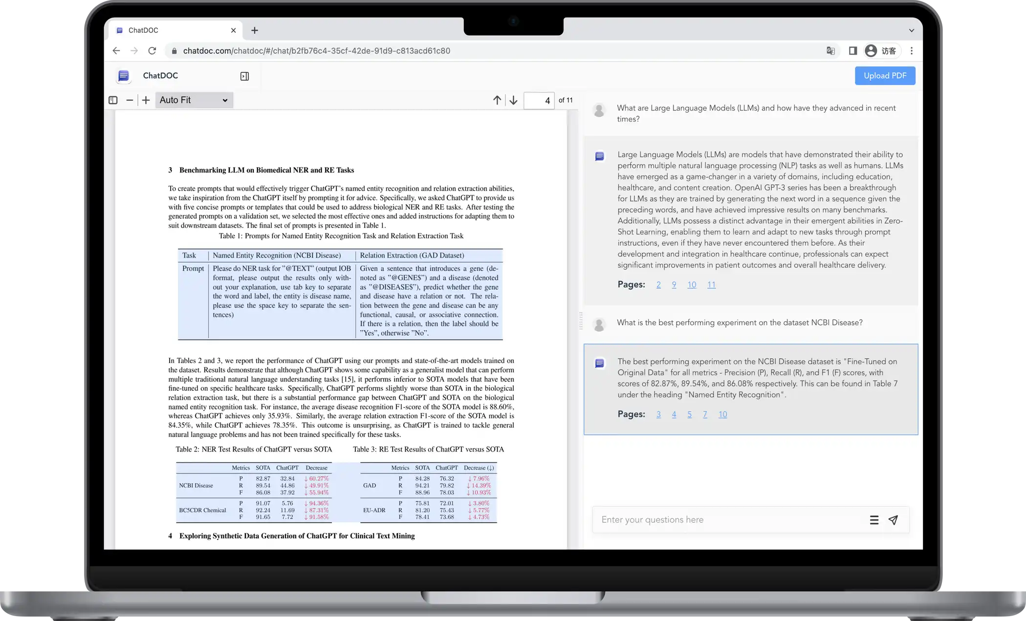 ChatDOC – это помощник чтения файлов на основе ChatGPT, который позволяет пользователям быстро извлекать, находить и обобщать информацию из PDF-файлов. Он также может понимать таблицы и тексты внутри документов, оптимизировать работу по анализу данных и предоставлять ответы, подкрепленные прямыми цитатами, извлеченными из файлов. Программа бесплатна в использовании и позволяет пользователям загружать до 10 документов объемом до 150 страниц.