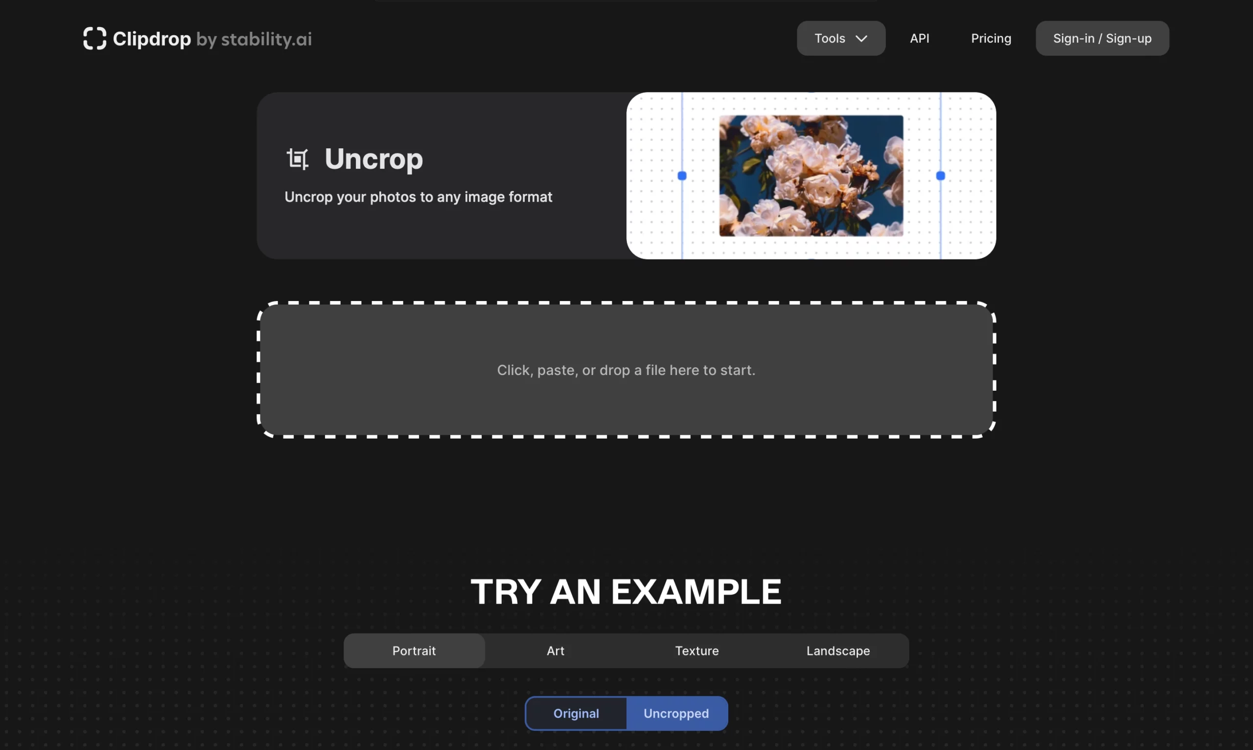 ClipDrop работает на базе модели Stable Diffusion, разработанной stability.ai. Принцип работы инструмента прост: загрузите фотографию, выберите новое соотношение сторон, и Uncrop создаст изображение, которое соответствует новому формату. Этот инструмент оптимизирован для изменения соотношения сторон изображений и позволяет легко генерировать и расширять фон или объекты на ваших любимых фотографиях, помогая вам создать потрясающие композиции и оживить ваши портреты.