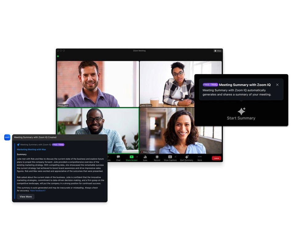 - Создание резюме встреч: Теперь организаторы встречи могут быстро создать итоговое резюме, которое основывается на моделях большого языка Zoom. Это резюме можно легко поделиться с участниками через чат Zoom или по электронной почте, что позволяет улучшить командную работу и повысить продуктивность.